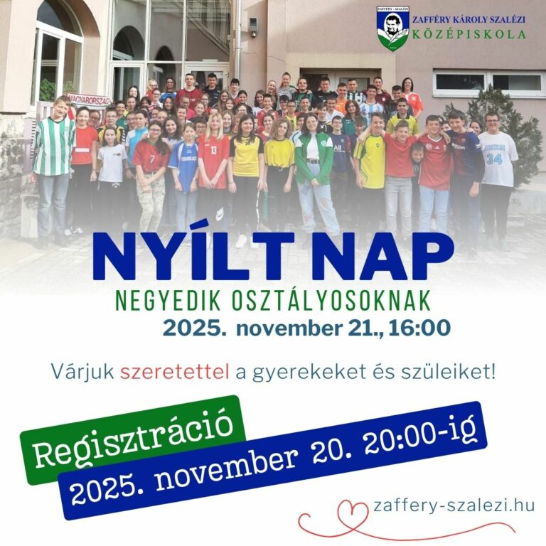 Kedves Érdeklődők! Szeretettel várjuk mindazokat, akik közelebbről is szeretnék megismerni iskolánkat, a Zafféry Károly Szalézi Középiskolát! Nyílt napunk kiváló lehetőség