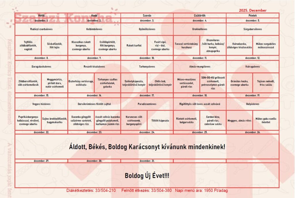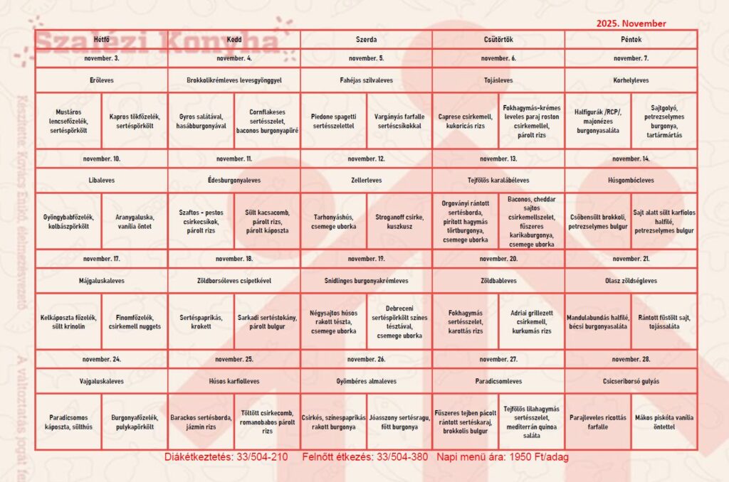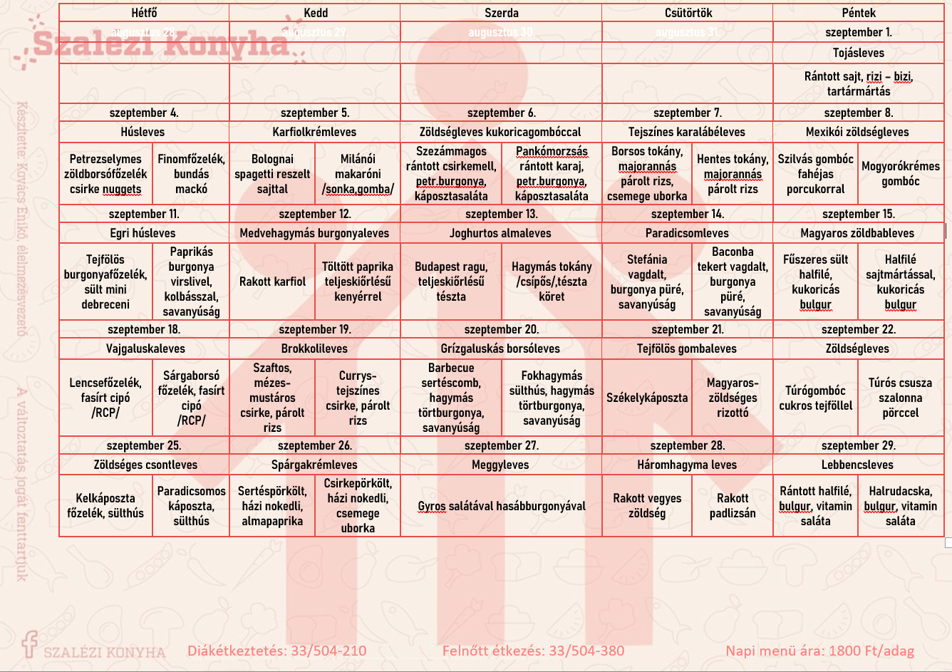 Iskolánkban az étkeztetést a Szalézi Konyha biztosítja, amely egészséges, kiváló minőségű és változatos ételeket kínál diákjaink, dolgozóink és az iskolán kívülről érkező vendégek számára. Az idei évtől már A és B menü közül is lehet választani. Bevezetésre került az önkiszolgálás, így a gyerekek annyi ételt mernek maguknak, amennyit biztosan el tudnak fogyasztani. Az étkezés az iskola felújított ebédlőjében történik, ahol kellemes környezetben és barátságos hangulatban fogyasztható el az étel.