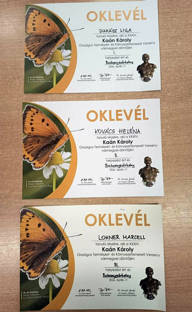 2026. április 17-én rendezték meg Bakonysárkányon a Kaán Károly Országos Természet- és Környezetismereti Verseny VÁRMEGYEI döntőjét, ahol diákjaink remekeltek.