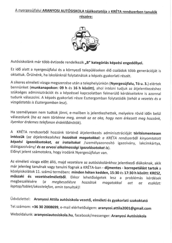 📱 Facebook/Messenger: Aranyosi Autósiskola