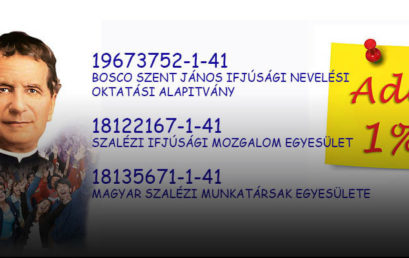 Kérjük, rendelkezzen 2021-ben is adójának 1%-val a Don Bosco Szaléziak részéről befogadó szervezetek egyike számára, ahol értékes tevékenységet végzük a fiatalok javára!   Sok olyan helyzet adódik, amikor anyagi eszközökre is szükség van a hatékony segítséghez. Ehhez mindenki hozzá tud járulni, aki személyi jövedelmére adót fizet  – még ha ez a kedvezmények miatt csökkentett is – , […]
